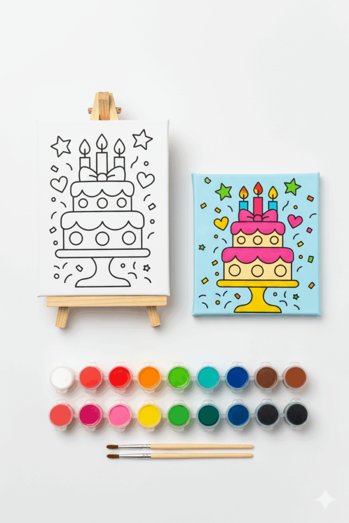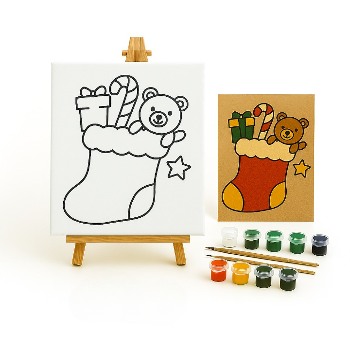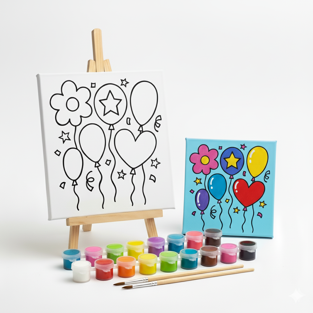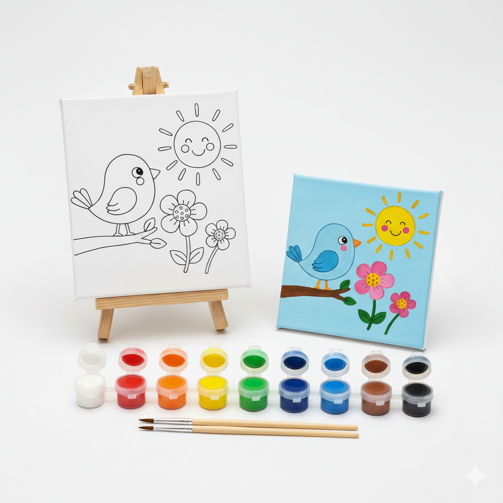 Each kit includes a teacher selected book, outlined canvas, full paint set and an easel